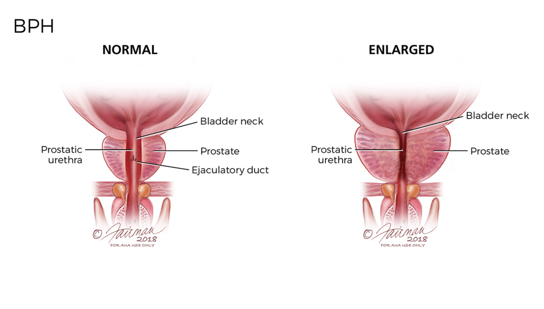 پروستات بزرگ میشود و به مجرای ادرار فشار میآورد. این مشکل در مردان بالای ۵۰ سال شایع است و با افزایش سن، احتمال